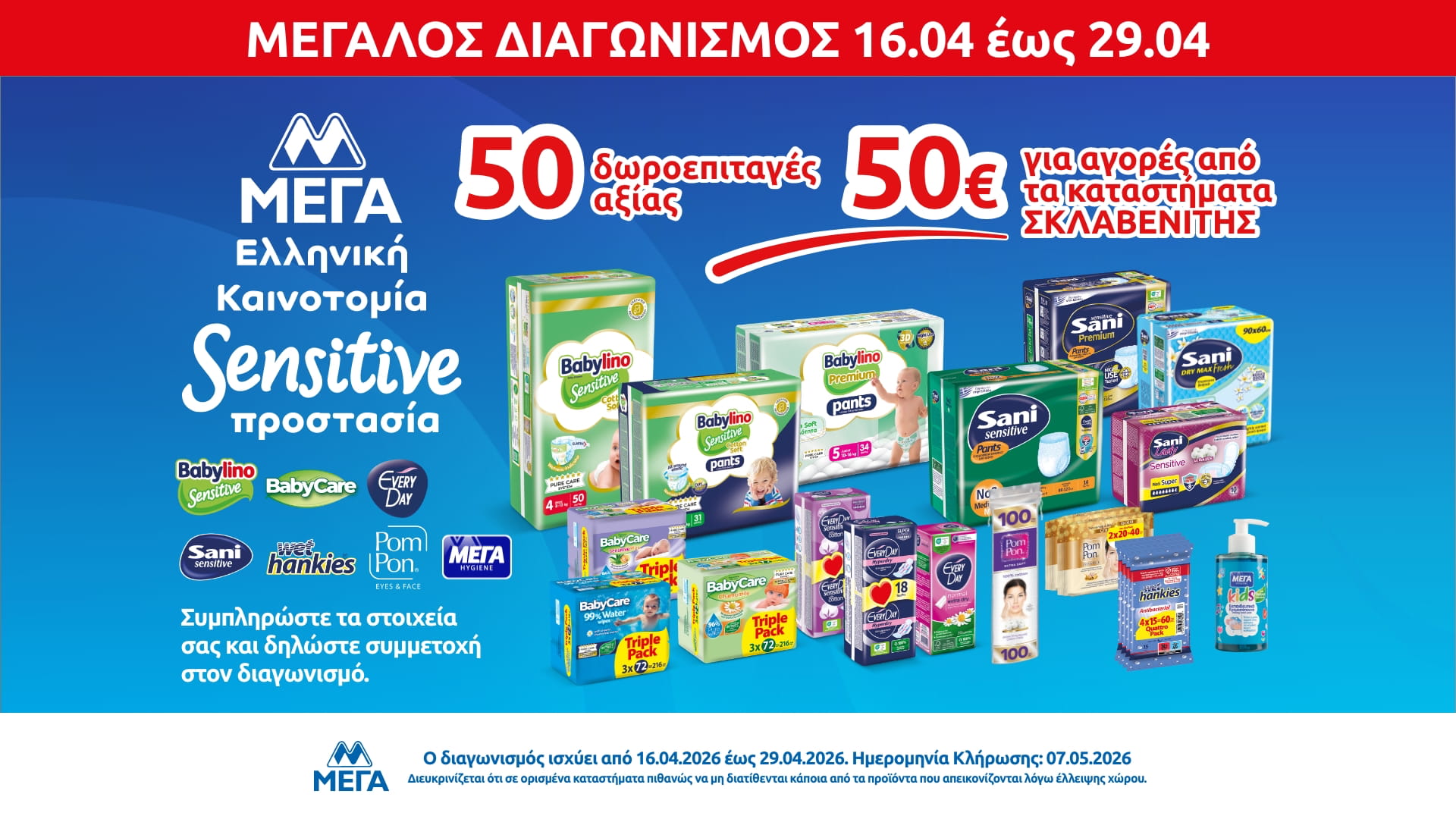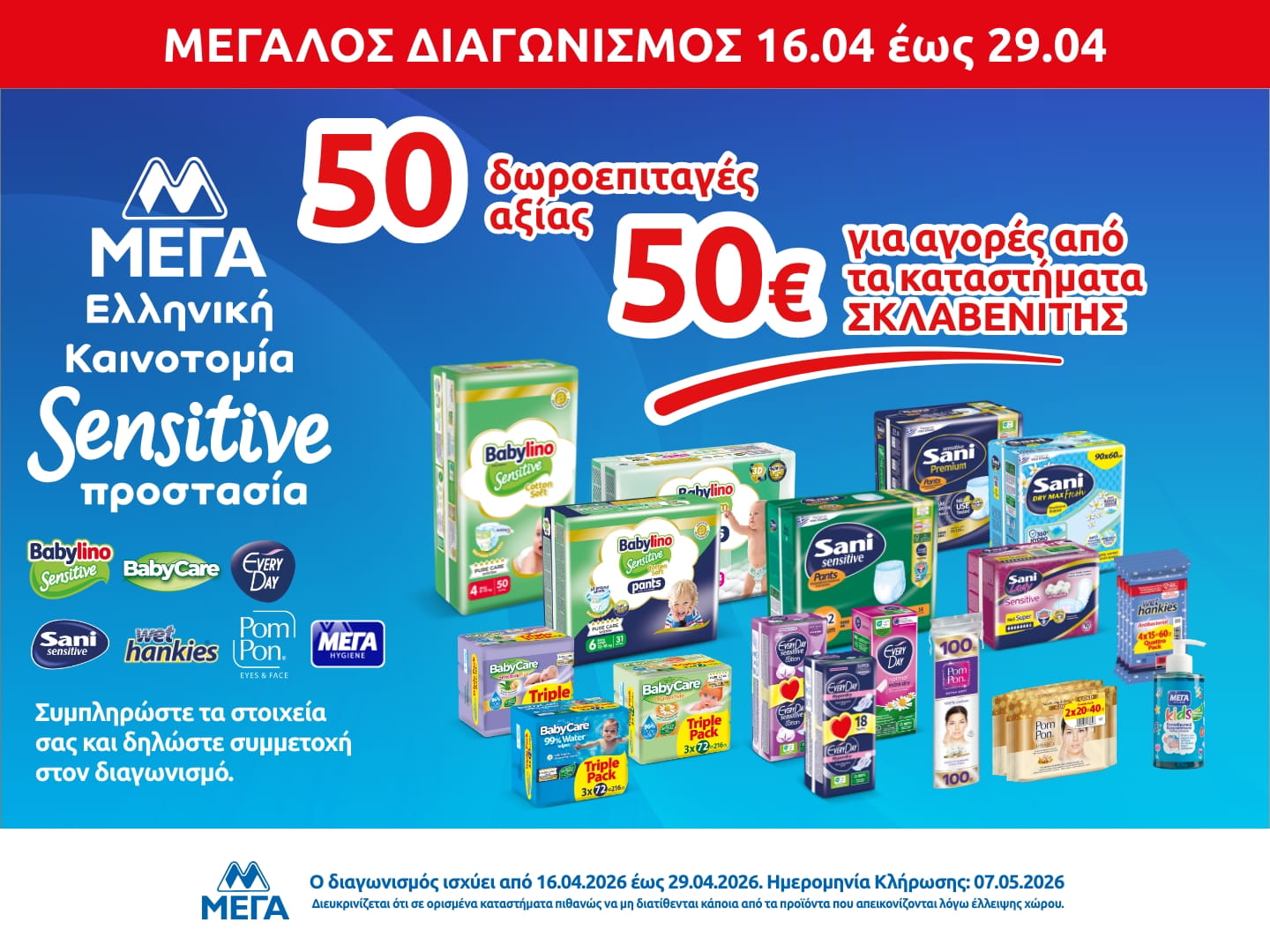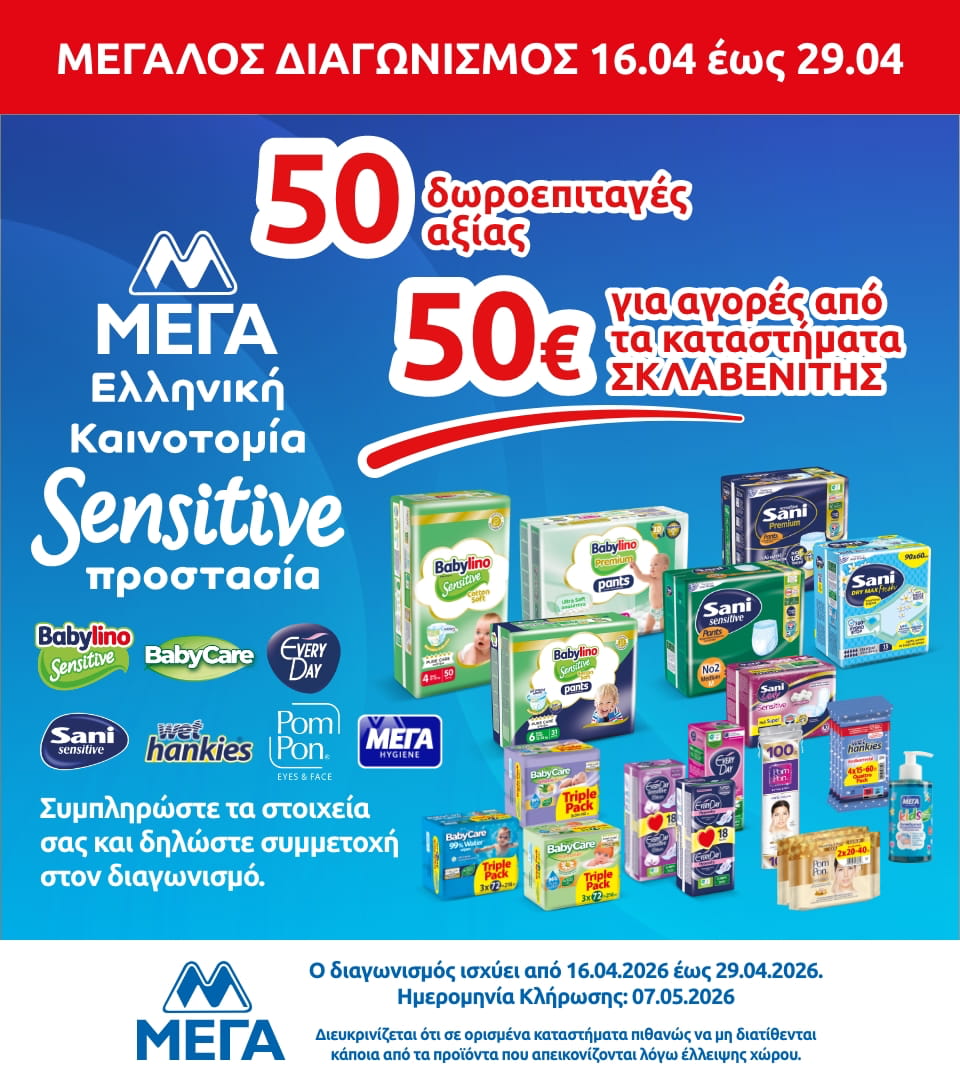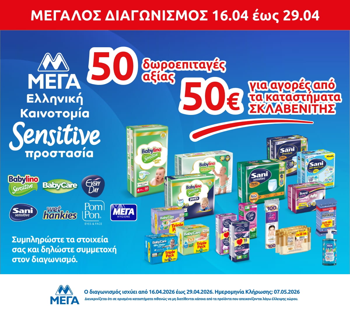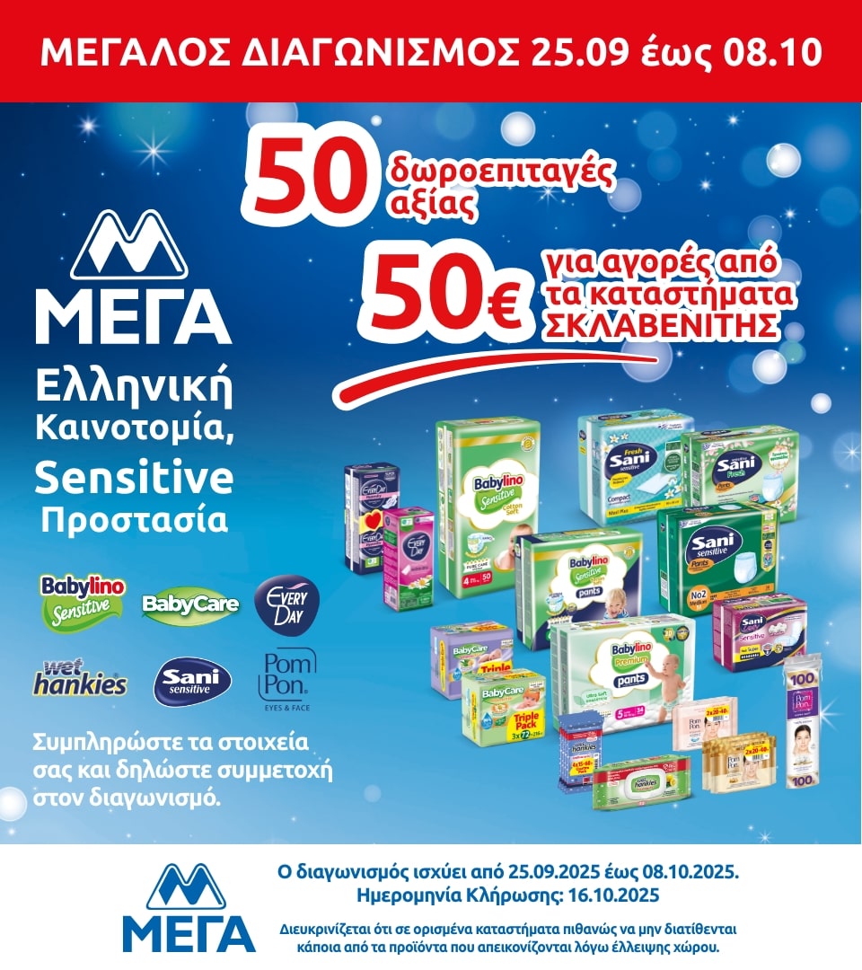 Η εταιρεία «ΜΕΓΑ ΠΡΟΪΟΝΤΑ ΑΤΟΜΙΚΗΣ ΥΓΙΕΙΝΗΣ Α.Ε.» (η «Διοργανώτρια»), η οποία εδρεύει στην οδό Δεκελείας, αρ. 148, Αχαρναί, Τ.Κ. 136 78, όπως νόμιμα εκπροσωπείται, με την υποστήριξη της εταιρείας «MULLENLOWE ΕΠΙΚΟΙΝΩΝΙΕΣ ΜΟΝΟΠΡΟΣΩΠΗ ΑΕ» (η «Διαφημιστική»), που εδρεύει στην Αμαλιάδος 4, Κηφισιά, Αθήνα, ΤΚ 145 64, όπως νόμιμα εκπροσωπείται, διοργανώνει τον παρόντα διαγωνισμό (ο «Διαγωνισμός» ή η «Ενέργεια»), στα Kαταστήματα «ΣΚΛΑΒΕΝΙΤΗΣ» και «ΣΚΛΑΒΕΝΙΤΗΣ Franchise».